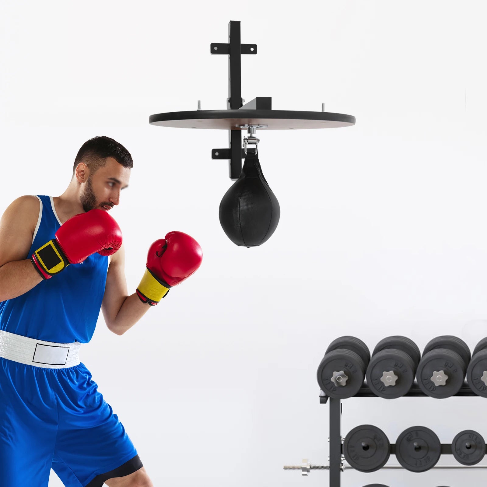 Transform your boxing training regimen with the 360° Rotatable Speed Bag Platform Kit, designed for serious athletes and enthusiasts alike. This heavy-duty boxing training equipment features a robust construction of steel, wood, and PU, ensuring durability and stability for rigorous workouts.