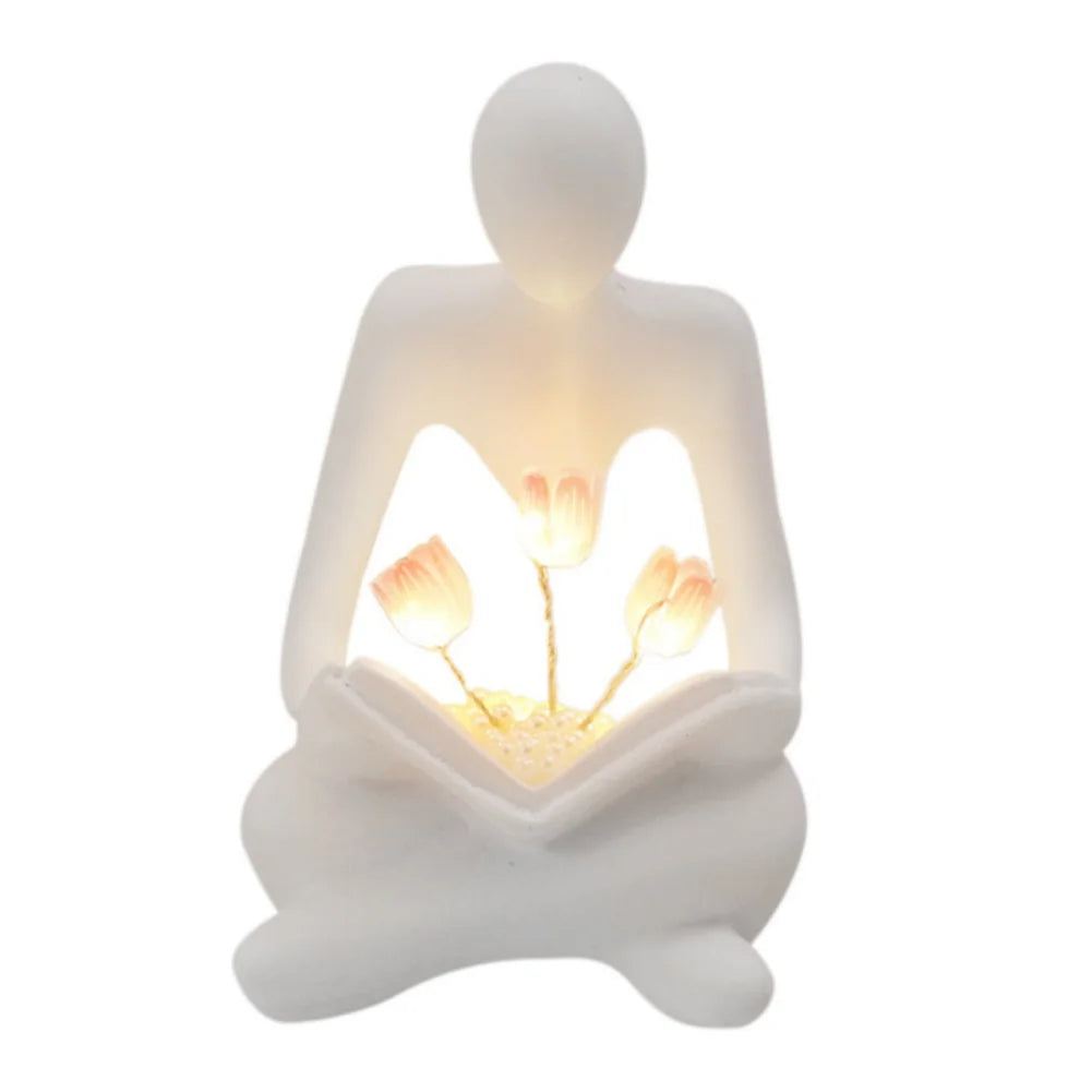 Desktop Thinker Sculpture Ornament Abstract Figure Statue Tulip Book Lamp Home Living Room Decoration Resin Crafts Birthday Gift