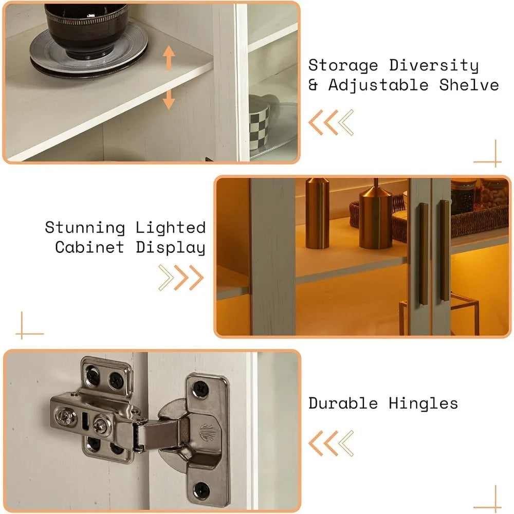 Sideboard Buffet Cabinet with LED Lights Modern Glass Doors Storage Cabinet Adjustable Shelf Mixed Color Accent Furniture